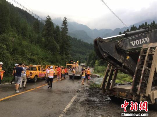 大型机械以到现场准备抢修被冲毁的道路。 钟欣 摄