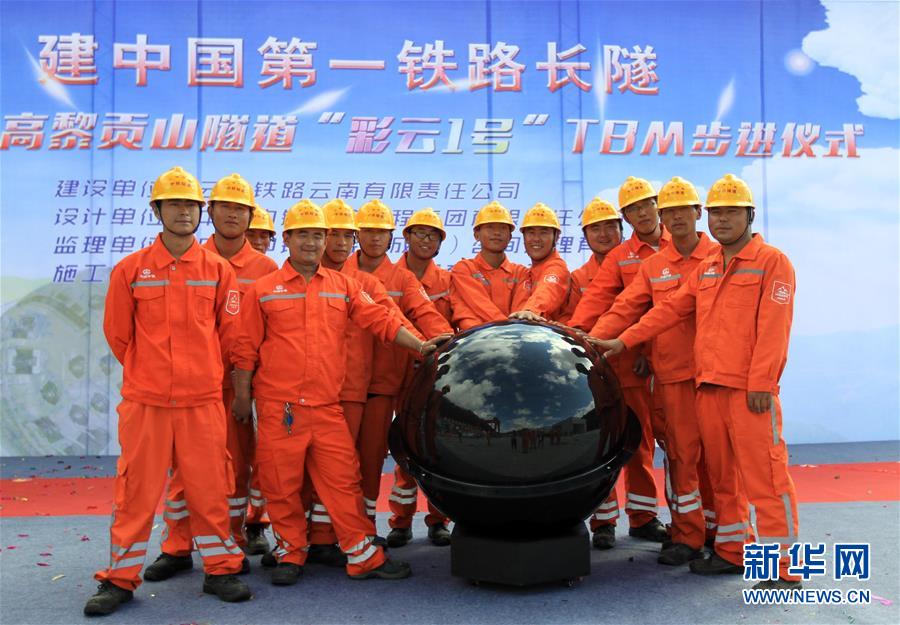 当日,国内首台再制造隧道掘进机(TBM)“彩云1号”在中铁隧道局大(理)瑞(丽)铁路项目高黎贡山隧道顺利始发,标志着高黎贡山隧道正式进入全面施工阶段。据介绍,大瑞铁路东起大理,西至中缅口岸瑞丽市,穿越了云南省西部的苍山、高黎贡山等山脉,跨怒江、澜沧江、西洱河等,全长约331公里,设计时速140公里,是国家“一带一路”倡议中泛亚铁路(西线)中缅国际铁路通道的重要组成部分。高黎贡山隧道全长34.538公里,是我国铁路第一长隧,为大瑞铁路控制性工程,该隧道地理位置特殊、地质条件复杂,施工难度极高。新华社记者 井辉辉 摄