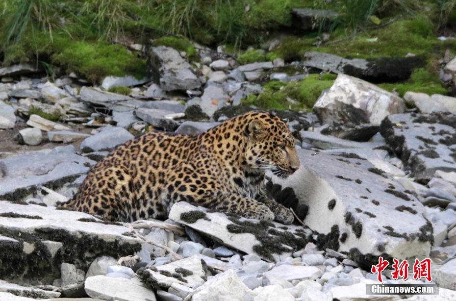 8月29日,四川甘孜州炉霍县泥巴乡境内发现一只野生花豹,该只花豹体长超过1米,其在河边滞留约5个小时后返回森林。中新社发杨孝康摄