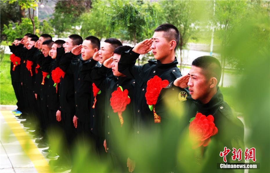 全体退伍老兵胸佩红花,敬上最后一个军礼。张小军摄