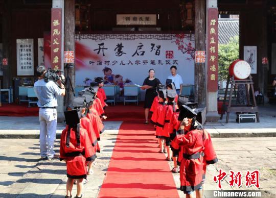 叶店村在文化礼堂内举行“开蒙启智”少儿入学开笔礼仪式 吴平摄