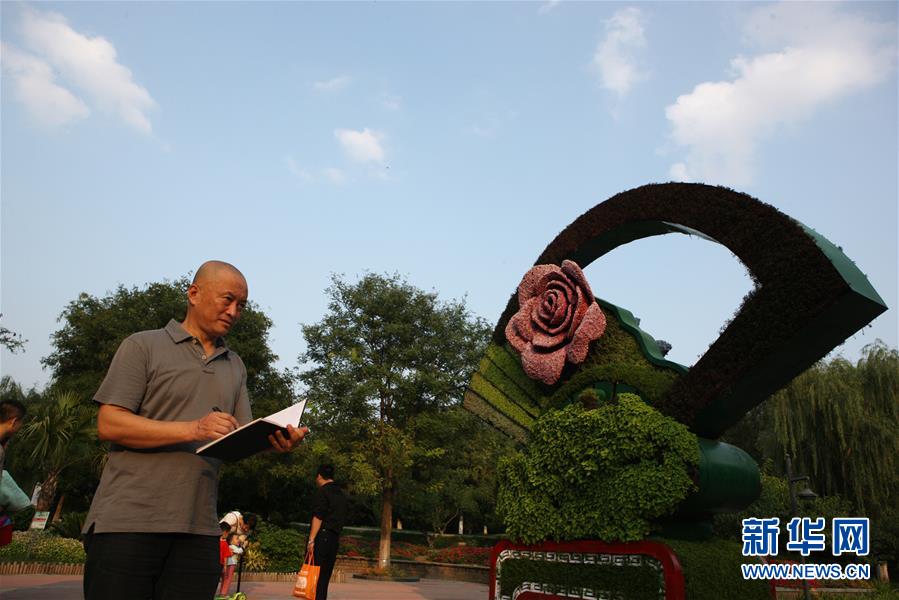 韩中人在大运河森林公园写生(9月2日摄)。新华社记者 吴晓初 摄