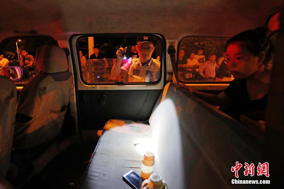 9月4日晚,上海浦东公安分局民警在临时卡点对车辆进行检查。当晚,上海警方在全市范围设立130余个卡点,组织开展社会治安集中打击整治行动,治安、刑侦、交警、消防、特警、轨交等多警种紧密配合、协同作战,打击现行违法犯罪,整治社会治安秩序,排查公共安全隐患。截至5日凌晨1时,共侦破刑事、治安案件310余起,抓获各类违法犯罪嫌疑人员440余人,清查各类场所6200余家,查处交通违法行为4万余起。中新社记者殷立勤 摄