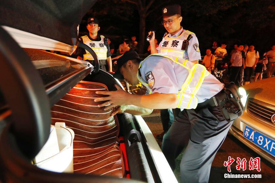 9月4日晚,上海浦东公安分局民警在临时卡点对车辆进行检查。当晚,上海警方在全市范围设立130余个卡点,组织开展社会治安集中打击整治行动,治安、刑侦、交警、消防、特警、轨交等多警种紧密配合、协同作战,打击现行违法犯罪,整治社会治安秩序,排查公共安全隐患。截至5日凌晨1时,共侦破刑事、治安案件310余起,抓获各类违法犯罪嫌疑人员440余人,清查各类场所6200余家,查处交通违法行为4万余起。中新社记者殷立勤 摄