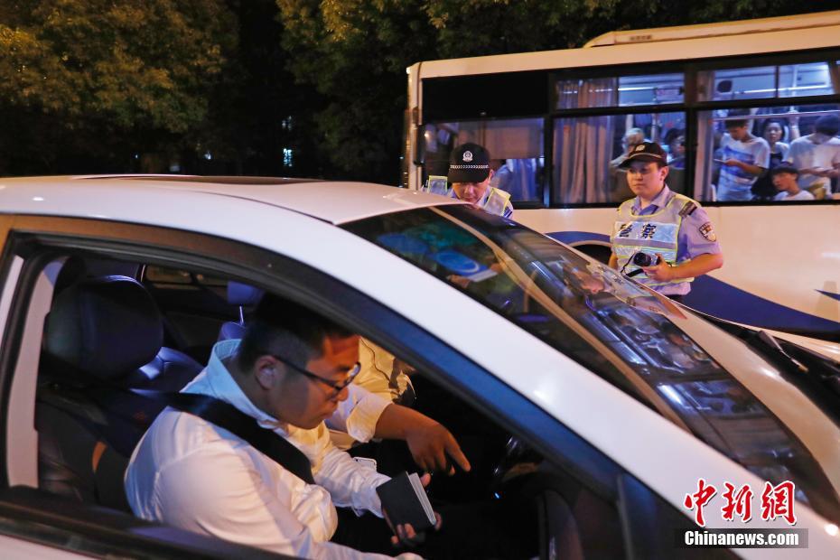 9月4日晚,上海浦东公安分局民警在临时卡点对车辆进行检查。当晚,上海警方在全市范围设立130余个卡点,组织开展社会治安集中打击整治行动,治安、刑侦、交警、消防、特警、轨交等多警种紧密配合、协同作战,打击现行违法犯罪,整治社会治安秩序,排查公共安全隐患。截至5日凌晨1时,共侦破刑事、治安案件310余起,抓获各类违法犯罪嫌疑人员440余人,清查各类场所6200余家,查处交通违法行为4万余起。中新社记者殷立勤 摄
