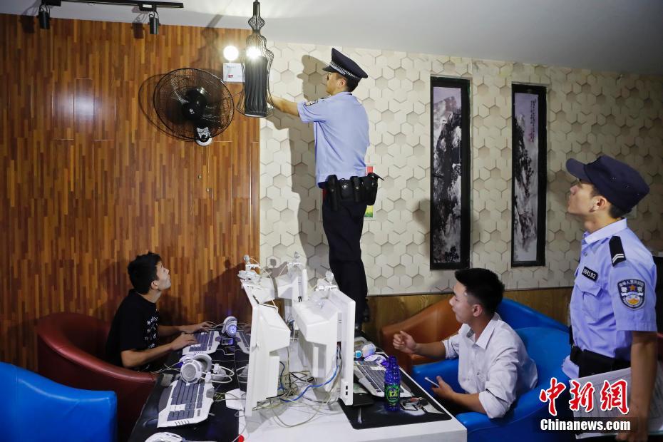 9月4日晚,上海闵行公安分局民警对辖区内网吧消防设施进行检查。当晚,上海警方在全市范围设立130余个卡点,组织开展社会治安集中打击整治行动,治安、刑侦、交警、消防、特警、轨交等多警种紧密配合、协同作战,打击现行违法犯罪,整治社会治安秩序,排查公共安全隐患。截至5日凌晨1时,共侦破刑事、治安案件310余起,抓获各类违法犯罪嫌疑人员440余人,清查各类场所6200余家,查处交通违法行为4万余起。中新社记者殷立勤 摄