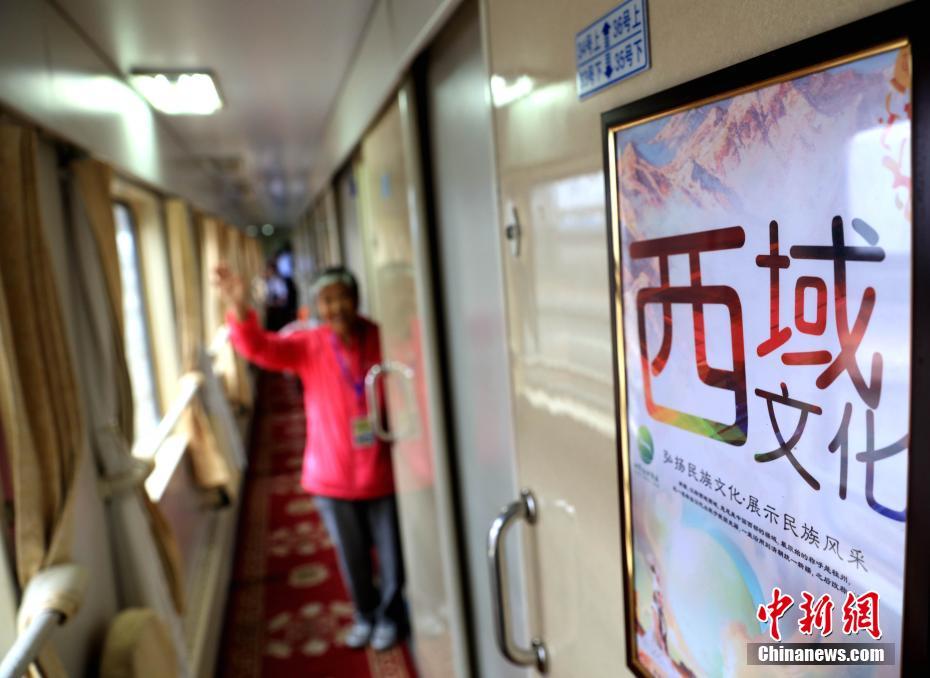 9月5日11时37分,从哈尔滨出发开往新疆阿勒泰地区的首趟“龙泰号”旅游专列正式开行。至此,中国两个边疆省份用旅游专列串联,沿途将黑龙江、内蒙古、甘肃、宁夏、新疆五个省,13座城市的旅游资源和风光实现连线,让中国的“西域风情”尽收眼底。图为旅游专列车体内部的独立软席。中新社记者王舒 摄