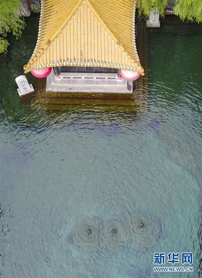 9月5日,济南趵突泉水位为28.36米,比复涌时的27.01米高出1.35米,著名的“三股水”正欢腾喷涌。