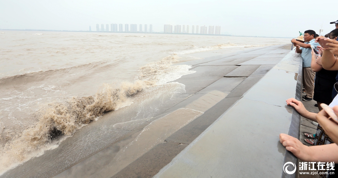 9月7日,农历白露节气,一些观潮者赶到杭州下沙七格堤坝,观看闻名天下的钱塘江涌潮。9月8日是农历七月十八,钱塘江将有俗称“鬼王潮”的大潮,提请去现场观潮的市民需注意安全。(浙江在线记者吴煌 摄)