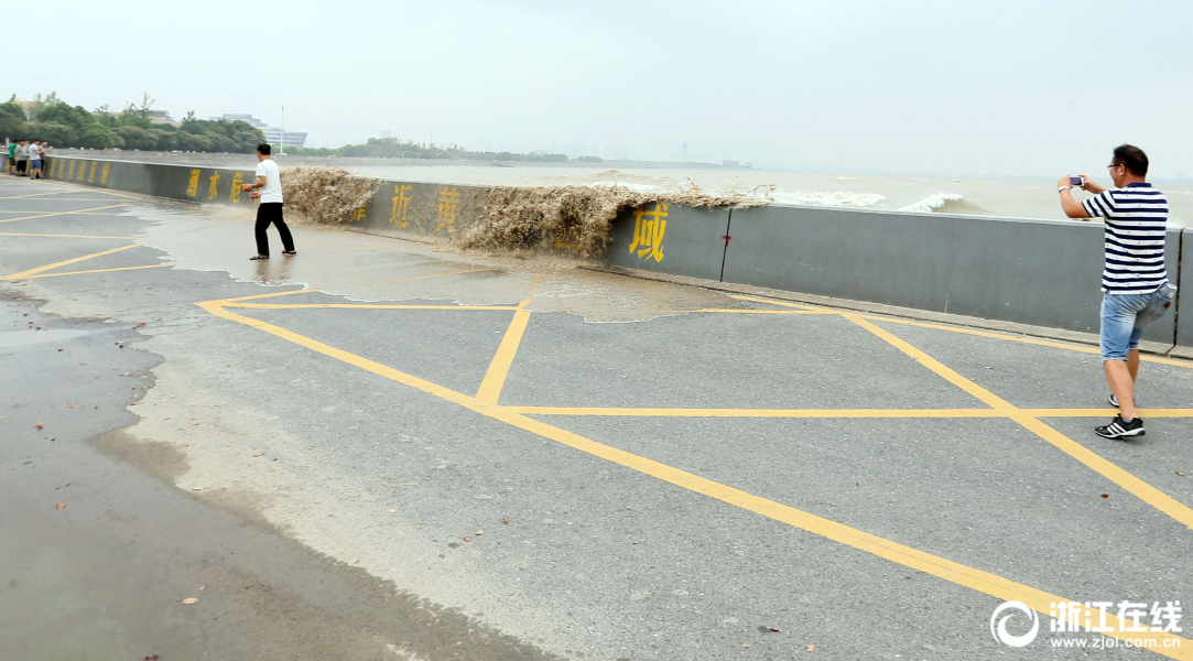 9月7日,农历白露节气,一些观潮者赶到杭州下沙七格堤坝,观看闻名天下的钱塘江涌潮。9月8日是农历七月十八,钱塘江将有俗称“鬼王潮”的大潮,提请去现场观潮的市民需注意安全。(浙江在线记者吴煌 摄)
