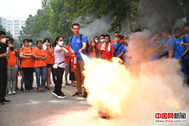 活动现场首先进行了清华大学军训学生消防疏散演练。演练现场,学生宿舍楼突然发生“火灾”,最先发现“火情”的学生第一时间拨打“119”报警,其他学生向学校进行报告,校内广播立即通知并要求有序疏散,闻讯赶来的学校微型消防站队员手拿灭火器扑救初起火灾,引导学生逃生、清点疏散人员。随后,消防中队赶到现场,立即展开战斗,采取内外夹击的方式全力灭火,并携带空气呼吸器深入火场搜索有无被困人员,消防云梯车及时展开救助被困学生。最终,“火灾”被成功扑灭,未造成任何伤亡。