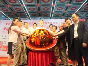 图为李来柱、刘爱琴、任远芳和谢飘等嘉宾按动启动球