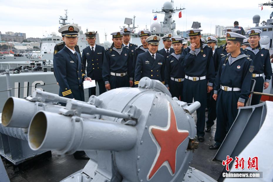 9月20日,中方舰员登上俄方舰艇参观。当日,参加中俄“海上联合-2017”联演第二阶段演习的中俄双方官兵互访舰艇,增进友好交流。中新社记者 任东 摄