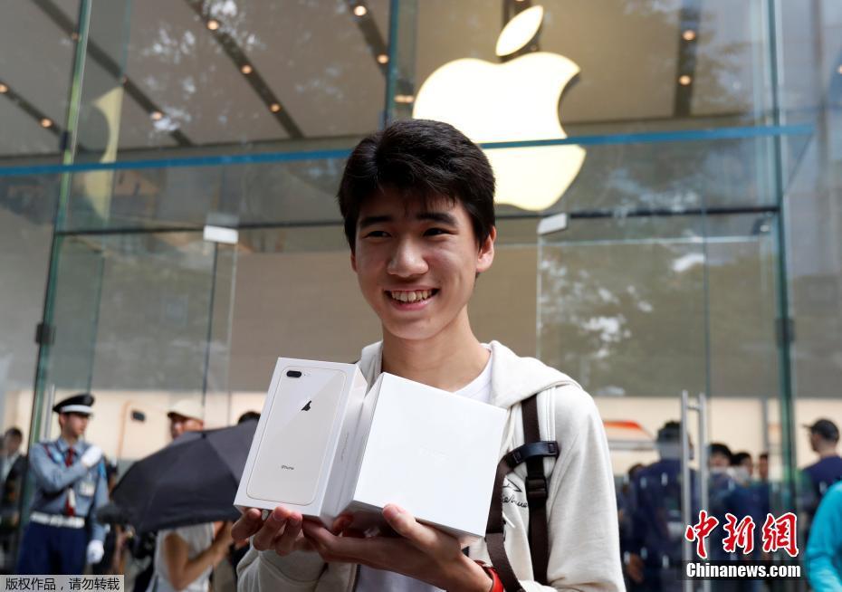 Ray Yokoyama是当天第一个买到新产品的顾客,他捧着iphone8 plus和新款iWatch,喜悦之情溢于言表。
