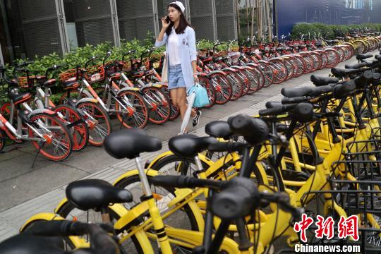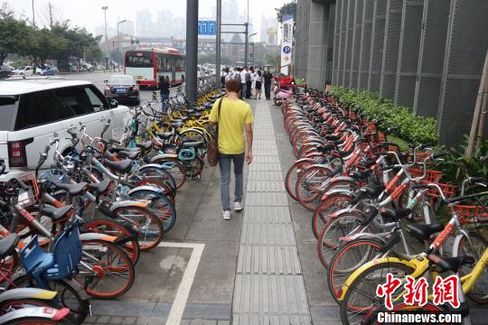9月22日,成都一地铁站出入口处,各大厂商的共享单车扎堆停放,“车满为患”。2016年11月,第一批共享单车投放成都,经过近一年快速发展,成都大街小巷均有共享单车的身影。同时,有关共享单车的管理也逐渐规范化,成都市交委日前透露,目前成都已暂停共享单车的新增投放,同时,成都年内还将试点建设电子围栏、立体停车点,以规范引导单车停放。