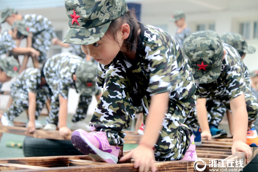 娃娃兵在官兵们带领下,完成了冒险岛游戏挑战赛。