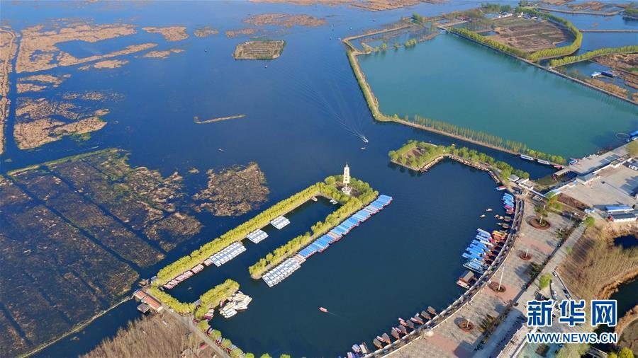 俯瞰河北省安新县境内的白洋淀(3月31日摄)。 新华社记者杨世尧 摄