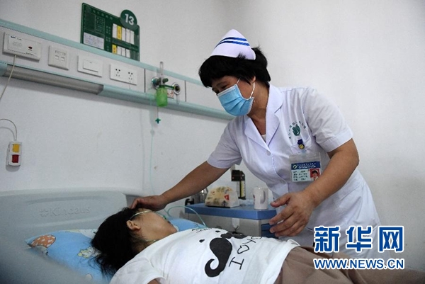 广西壮族自治区南宁市第四人民医院护士长杜丽群在询问一名患者身体情况(9月18日摄)。新华社记者陆波岸摄