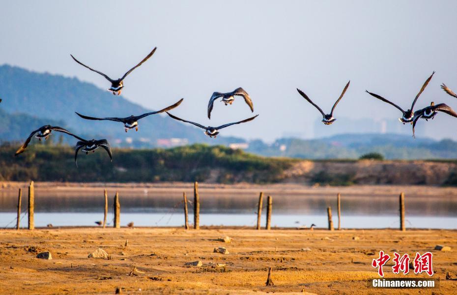 大批冬候鸟飞抵中国最大淡水湖鄱阳湖栖息越冬