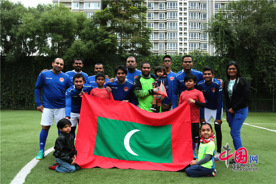 10月14日,外交部亚洲司和马尔代夫驻华使馆官员举行足球友谊赛,共同庆祝中马建交45周年。中国网 王东海 摄