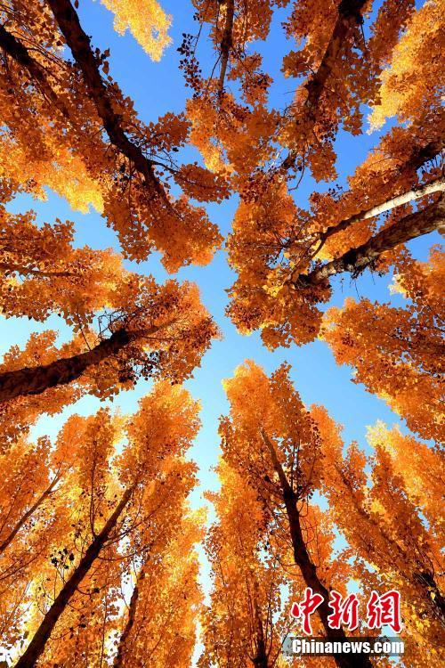 深秋时节,地处祁连山下的甘肃千年古城——张掖,秋意浓浓,金黄的杨树、火红的枫叶倒映在湖面,天蓝水清,各色树叶“争奇斗艳”呈现出色彩斑斓的秋景。陈礼 摄