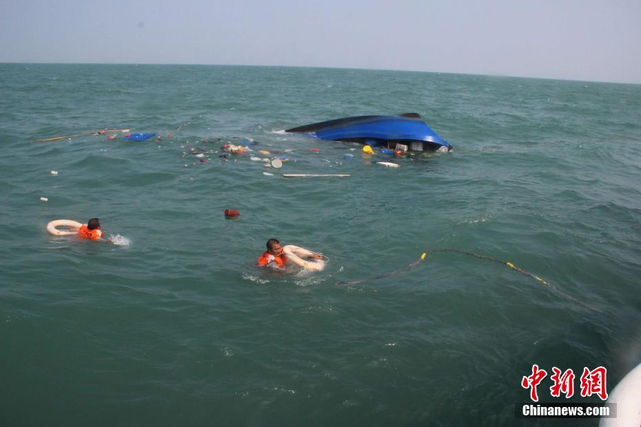 10月23日,一艘木质小渔船在广西北海海域遇险,船上有3名人员落水。事发后,广西海警一支队赶往事发海域,成功将3名遇险渔民转移。中新社记者 唐金龙 摄