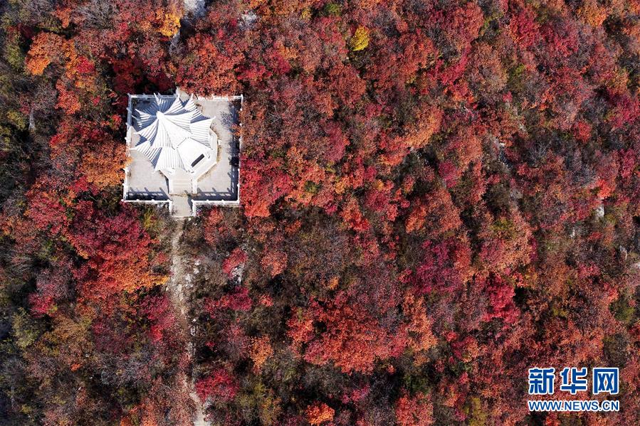 这是10月26日拍摄的河北省沙河市柴关乡鸡冠山红叶景色。金秋时节,太行山区沙河市柴关乡的红叶进入观赏佳期,漫山遍野的红叶如火似霞,景色如画。新华社发(陈雷 摄)