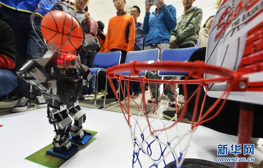 10月29日,选手参加类机器人竞技体育赛投篮项目的比赛。