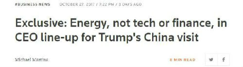 另据路透社和彭博社的报道,将有大约40家企业高管陪同特朗普访华,其中大部分是能源和大宗商品企业。外媒估计,特朗普访华将撮合数十亿美元的能源协议。