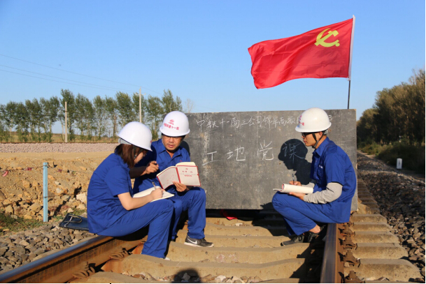 中铁十一局集团三公司承建的锦阜高铁路扩能改造工程Ⅱ标段正处于施工大干的关键时期。近日来,该标段项目党工委为了不影响施工进度,充分利用现场休息时间,组织施工一线党员就地在废弃的轨道上开展“重温入党志愿、入党誓词”活动暨“两学一做”专题党课学习,有效解决了工学之矛盾。