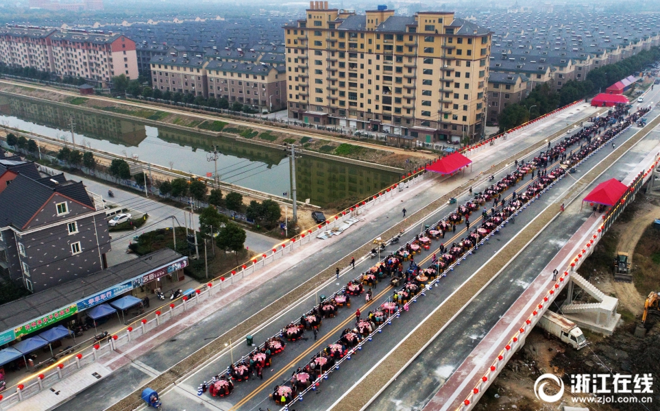 海宁:大桥完工村民摆上百桌宴