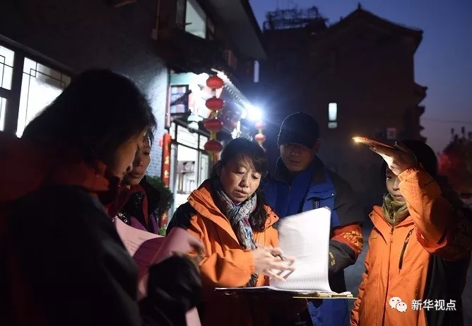 11月19日,北京朝阳区高碑店村村委会的工作人员对辖区内的商铺进行安全隐患排查。 新华社记者 罗晓光 摄