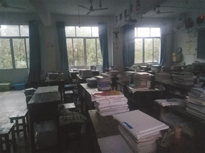 11月18日,桃江四中教学楼三楼的364班内景,课桌排列拥挤。新京报记者 高敏 摄