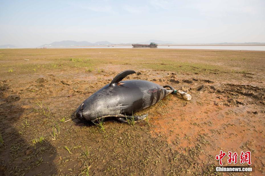 11月24日,在江西鄱阳湖黄金咀附近湖洲上,一头已经死亡的长江江豚被人发现。据判断,这头长江江豚死亡约1周时间,尾部被绳子缠住。中科院水生所的工作人员将此头江豚运送到武汉,由专家解剖进行死因分析。中新社记者傅建斌摄