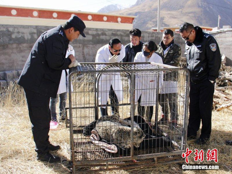 昂赛乡党委书记扎西东周介绍,目前该只雪豹精神状态较好,因后腿大腿骨折不能在当地治疗,已在26日早间送往1000公里外的青海省野生动物救护繁育中心进一步治疗。文/罗云鹏昂赛乡政府提供