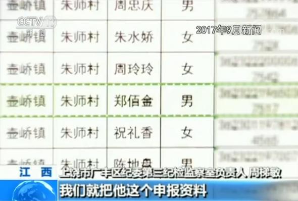 上饶市广丰区纪委第三纪检监察室负责人 周梯敏:我们就把他这个申报资料调出来看了一下。当时郑佰水在这个信息采集表上进行了签字审核,郑佰金的贫困申请书也是郑佰水帮他代替写的。然后还有就是说郑佰水本人担任他的帮扶干部。