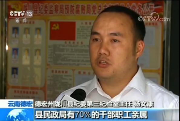 德宏州陇川县纪委第三纪检室主任 杨文康:我们刚开始调查,只是以为其中一小部分亲属违规享受低保 在调查过程中才发现,县民政局有70%的干部职工亲属,违规享受低保。