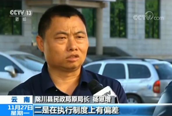 陇川县民政局原局长 杨恩增:一是我们认识不到位 ,二是在执行制度上有偏差,三是我作为主要领导有主要责任,在认识和履职方面都有问题。