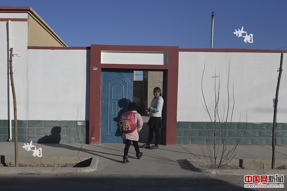 母亲宋晓霞在家门口迎接马蓉。宋晓霞在操持家中15亩棉花地,还要利用闲暇时间去做捡枸杞之类的零工。