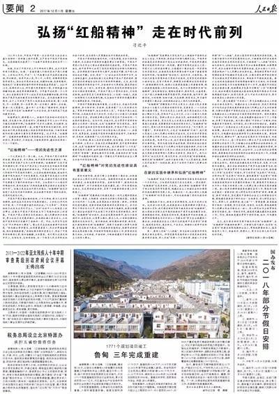 就在几天前,12月1日,从《人民日报》到多家省级党报,都在重要版面上刊发一篇题为《弘扬“红船精神”,走在时代前列》的文章。