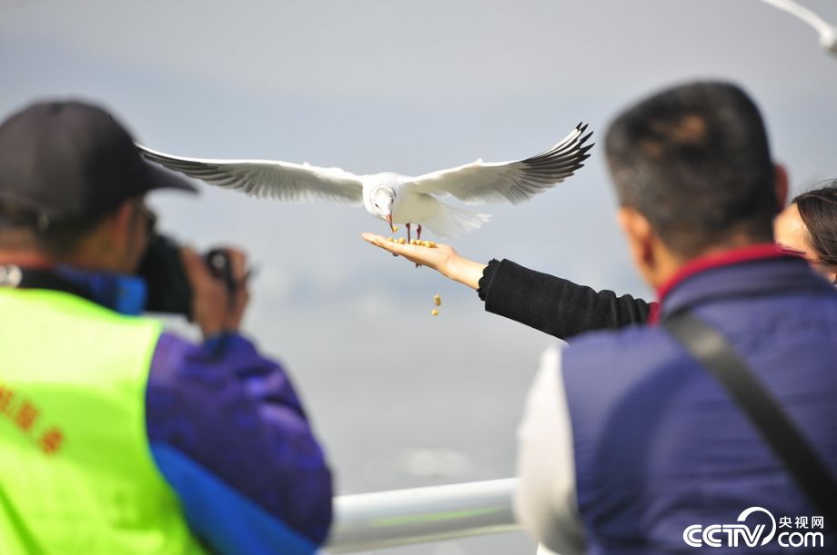 2017年12月4日,云南昆明大量游客在滇池边观赏红嘴鸥,进入冬季,越来越多的红嘴鸥从西伯利亚飞来昆明越冬。 视觉中国