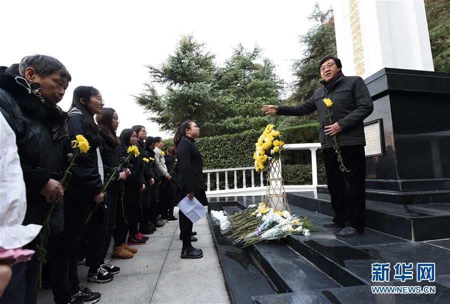 当日,南京晓庄学院学生、市民代表和历史学家等在“侵华日军南京大屠杀草鞋峡遇难同胞纪念碑”前举行活动,祭奠遇难同胞。位于南京城北长江边的草鞋峡是南京大屠杀期间日军杀人最多的地方,共有5.7万余人在这里遇难。