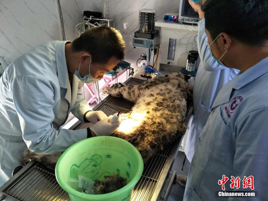 雪豹被车撞多处骨折 手术3小时成功将断骨复位 ( / 8)