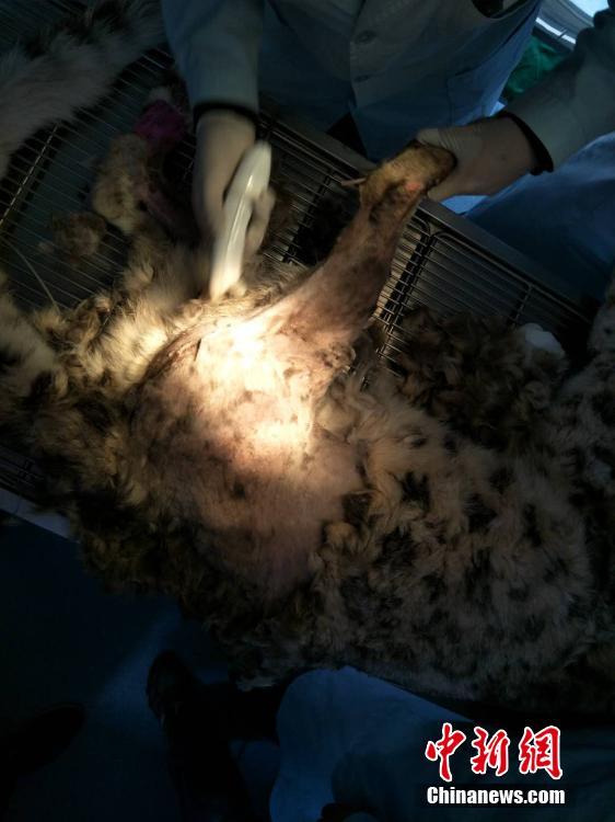 雪豹被车撞多处骨折 手术3小时成功将断骨复位
