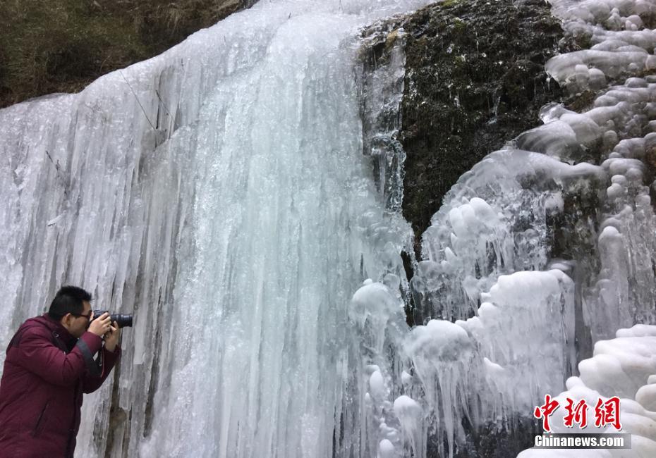 冬日甘肃官鹅沟现“百态冰瀑”