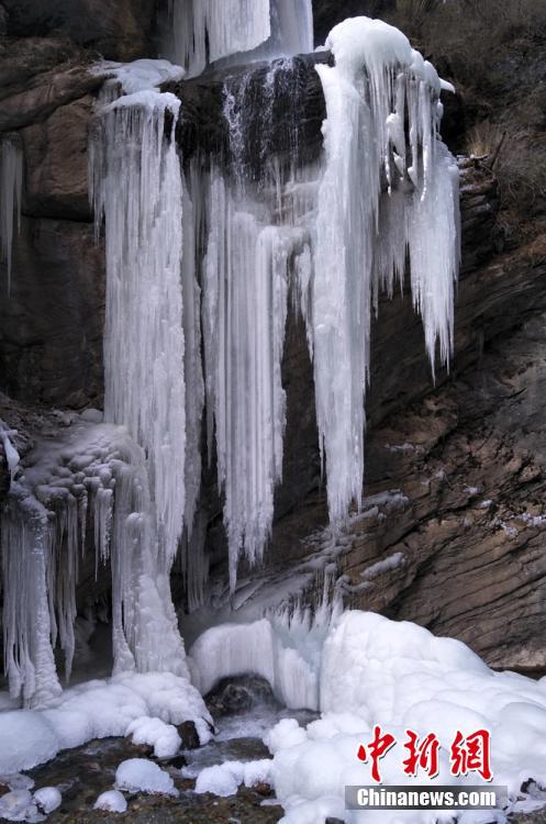 冬日甘肃官鹅沟现“百态冰瀑”