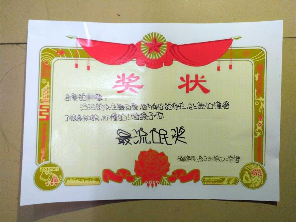 期末女生自掏腰包买奖状 给室友每人发一张(   / 7 )