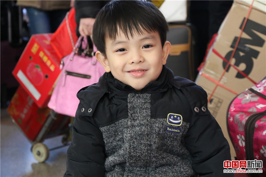 1月13日,2017春运开始,北京火车站候车大厅,小朋友笑着期盼回家。中国网记者 尚阳 摄
