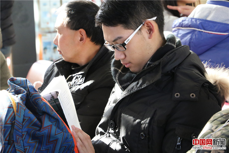 1月13日,2017春运开始,北京火车站候车大厅,一位旅客边看书边候车。中国网记者 尚阳 摄