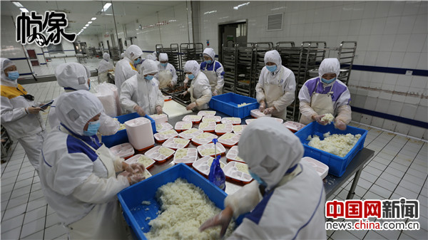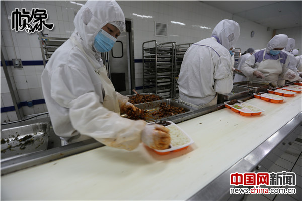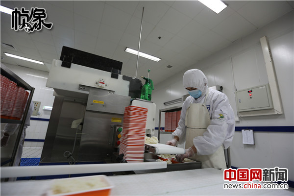 经过人眼筛查的盒饭装箱。中国网记者 吴闻达 摄